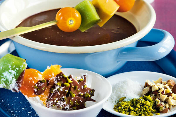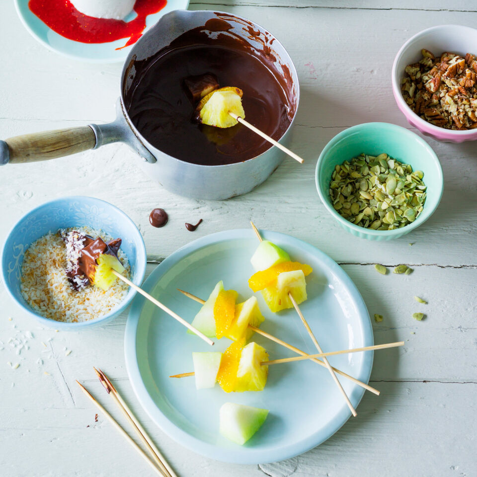 Schokofondue Mit Fruchtspiesschen Rezept Kuchengotter