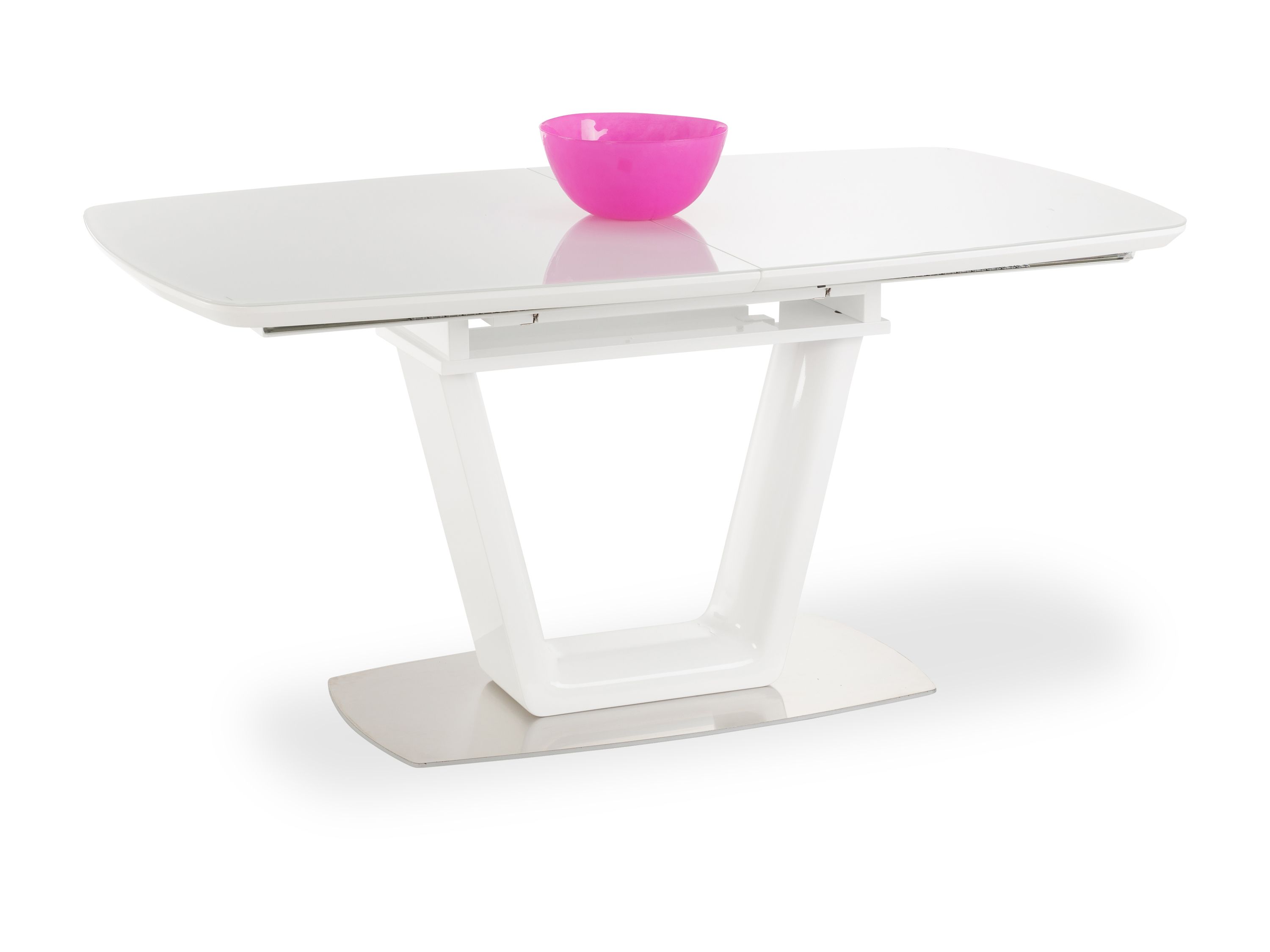 MDF Hochglanz wei lackiert Sicherheitsglas 5mm glnzend reinwei lackiert mit Synchronauszug Auszugsplatte. Gewhnlich versandfertig in 4 bis 5 Tagen. Stilvoll und zeitlos designt prsentiert der hollndische Hersteller bert plantagie den Auszugstisch Bono.